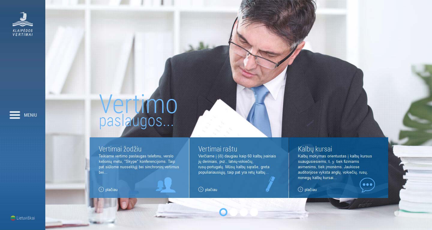 Klaipėdos vertimų biuras „Klaipėdos vertimai“ – vertimo žodžiu bei raštu, redagavimo, kalbų kursų paslaugas teikianti kompanija. Šiam vertimų biurui buvo sukurtas unikalus ir funkcionalus dizainas, sukurta mobili svetainės versija, atlikti „JavaScript“ darbai, įdiegta turinio valdymo sistema „FLY-JET“. Vertimų biuro internetinei svetainei sukurtas žemėlapio modulis, suprogramuota automatinė vertimo kainos skaičiuoklė, prisitaikantis (angl. Responsive) dizainas bei kiti darbai.